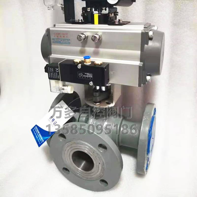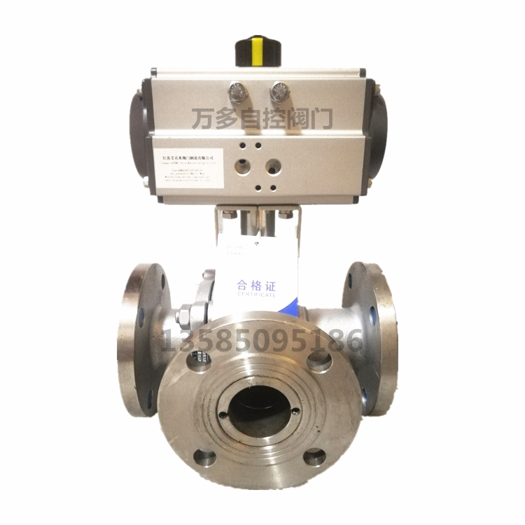 Pneumatic three-way flange ball valve Q644F 5F-16C cast steel 25P stainless steel 304 DN3240506580100