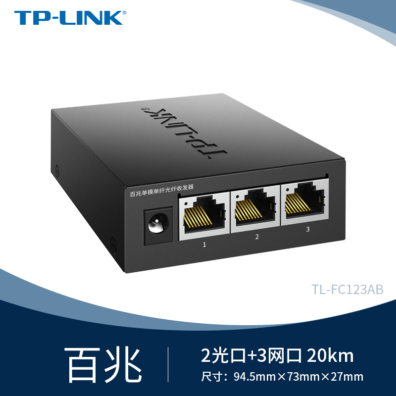 TP-LINK 2 Optical 3 Electric Fiber Optic Transceiver Set Gigabit Single Mode Single Fiber Optoelectronic Converter Module Network Monitoring Long Distance Two-way 3km Rack TL-FC323AB