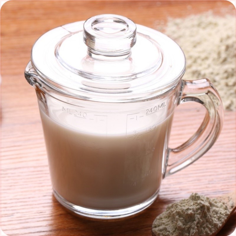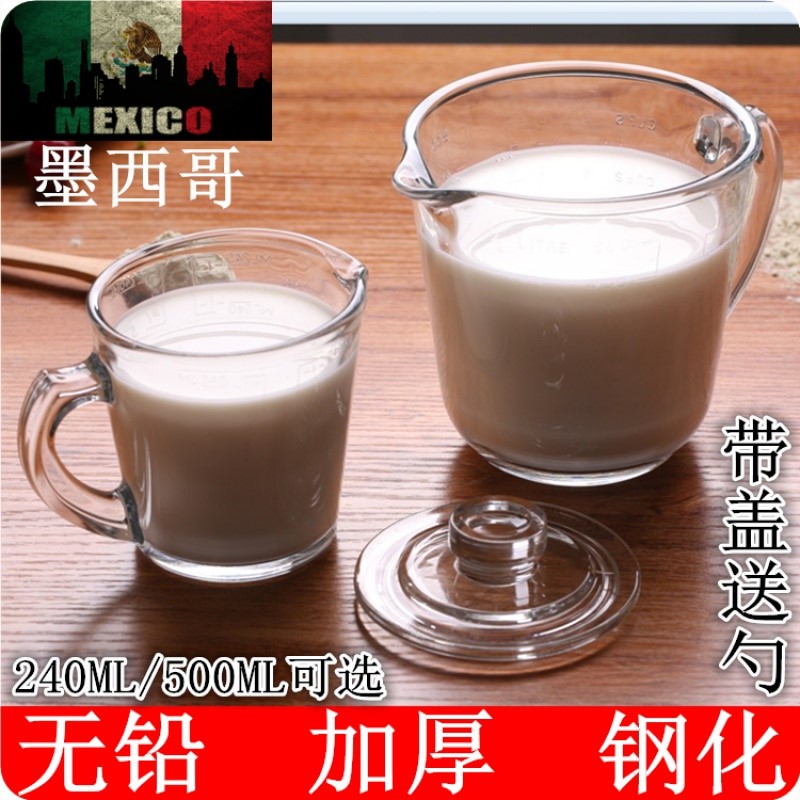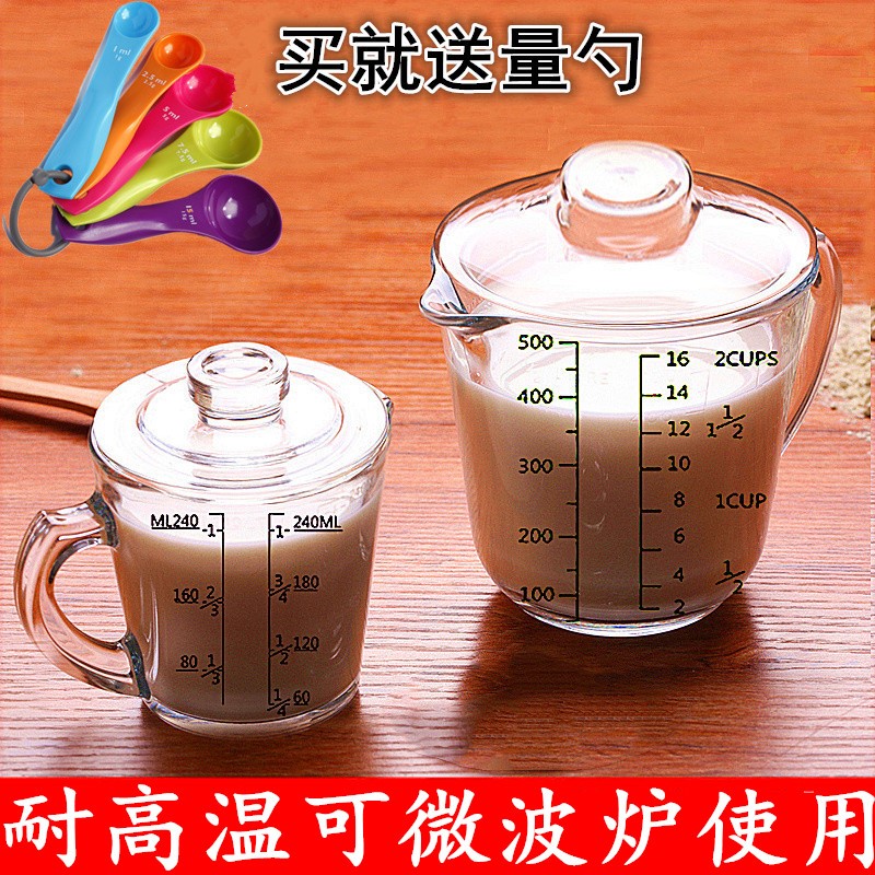 High-end imported with scale glass measuring cup children's milk cup thickened breakfast cup with lid microwave heating