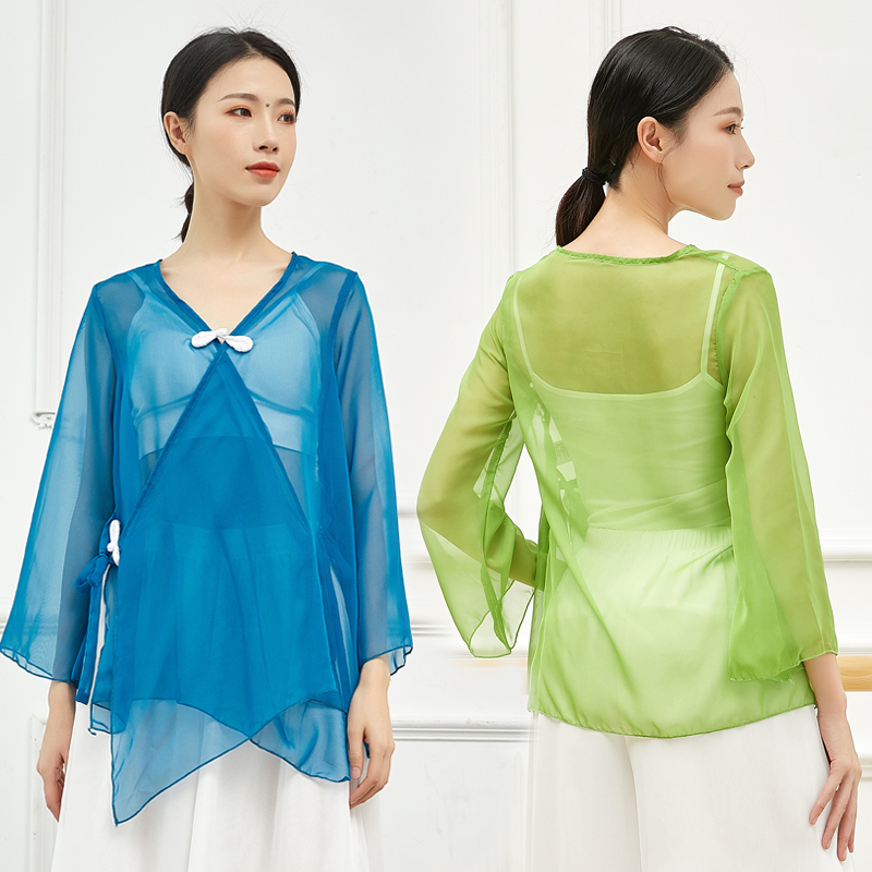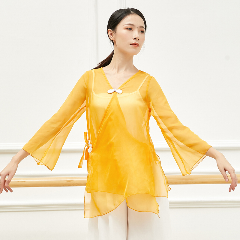 Master's Classical Dance Suit Body Rhyme Clothes Performance New Blouses Chinese Dance Dance Serving Trumpeter Sleeves Workout Cardioreography