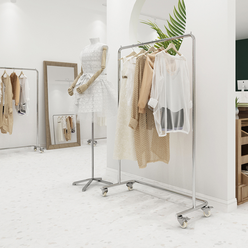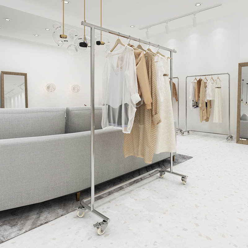 Clothing store display rack men's clothes rack silver women's floor rack stainless steel brushed silver simple display rack