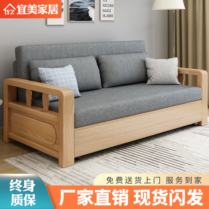 Storage sofa bed small apartment living room simple and modern 1 5 m 1 2 multi-functional solid wood foldable sofa dual-purpose