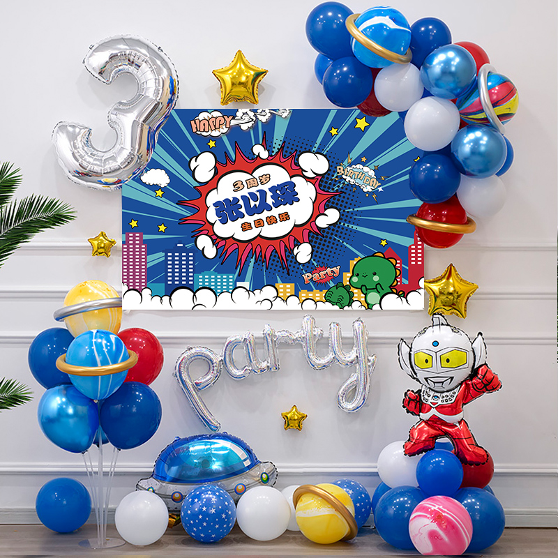 Children's Ultraman Birthday Theme Arrangement Balloons Children's Boys Birthday Party Background Wall Scene Decoration Package