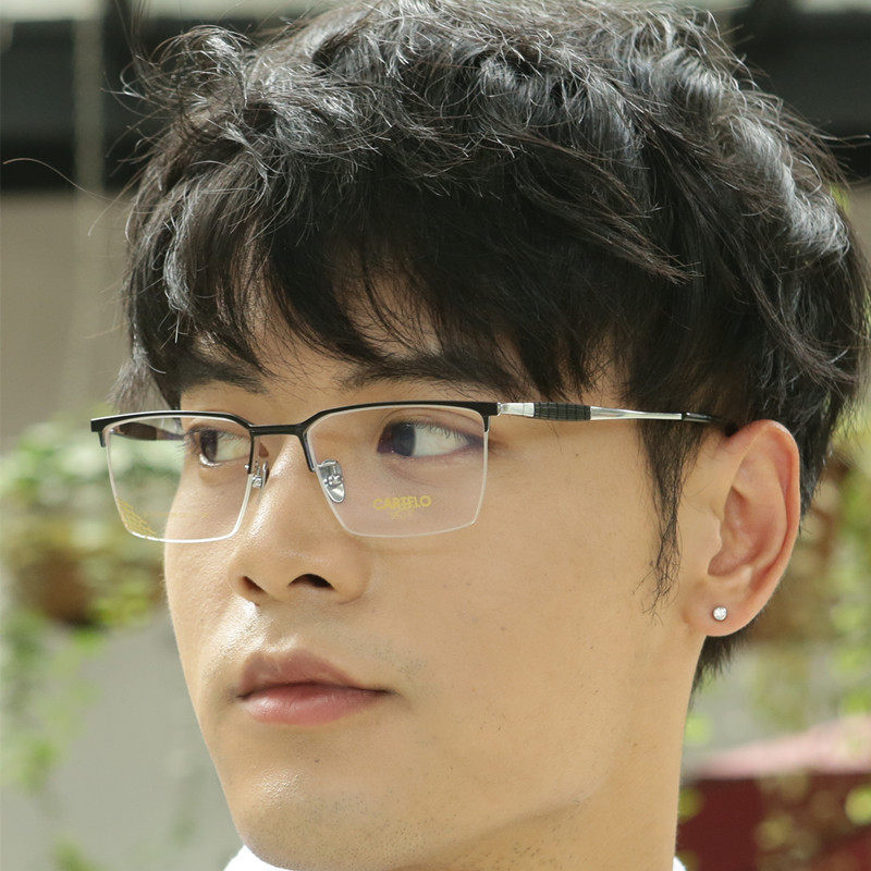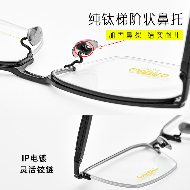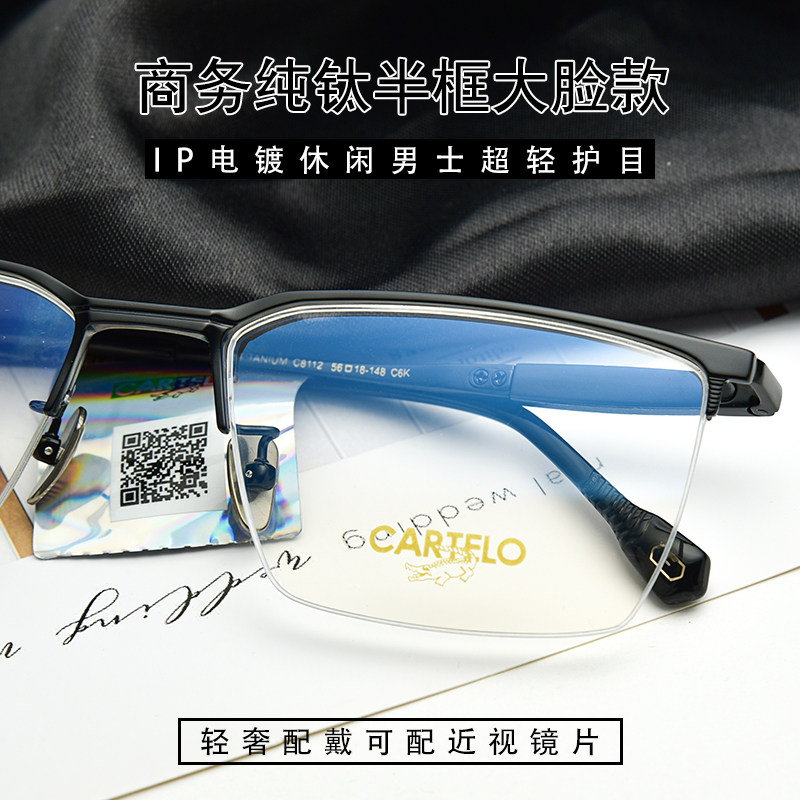 Pure titanium ultra-light half-frame frame with short-sighted and far-sighted black business simple men's Cardiel crocodile processing glasses