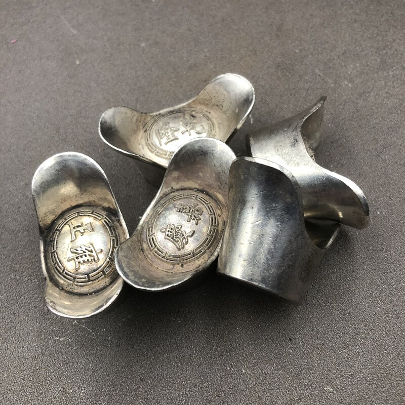 Antique Miscellaneous Five Emperors Money Ingot Silver Ingot Set Small Ingot Home Craft Ornament Five Sets