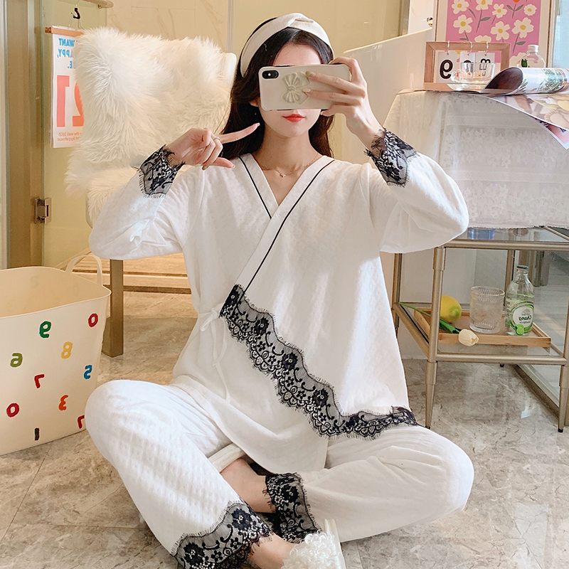 Yoga Moon Subsuit Spring Autumn Pure Cotton Postnatal Breastfeeding Pyjamas March 12 Winter Pregnant Women's Home Suit Suit 11