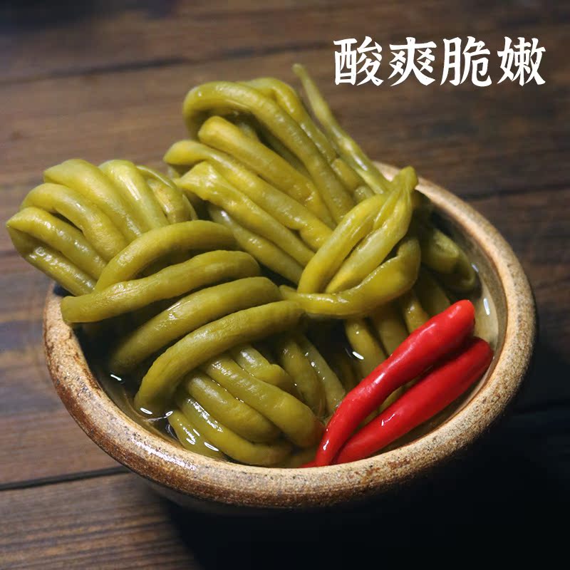 Sour beans Hunan specialty old altar fermented soaked sour cowpea corners bagged, diced, crisp, tender, sour, pickled pickles, kimchi