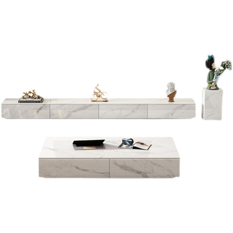 Bright rock slab tea table TV cabinet combination Italian modern all solid wood furniture simple light luxury small apartment floor cabinet