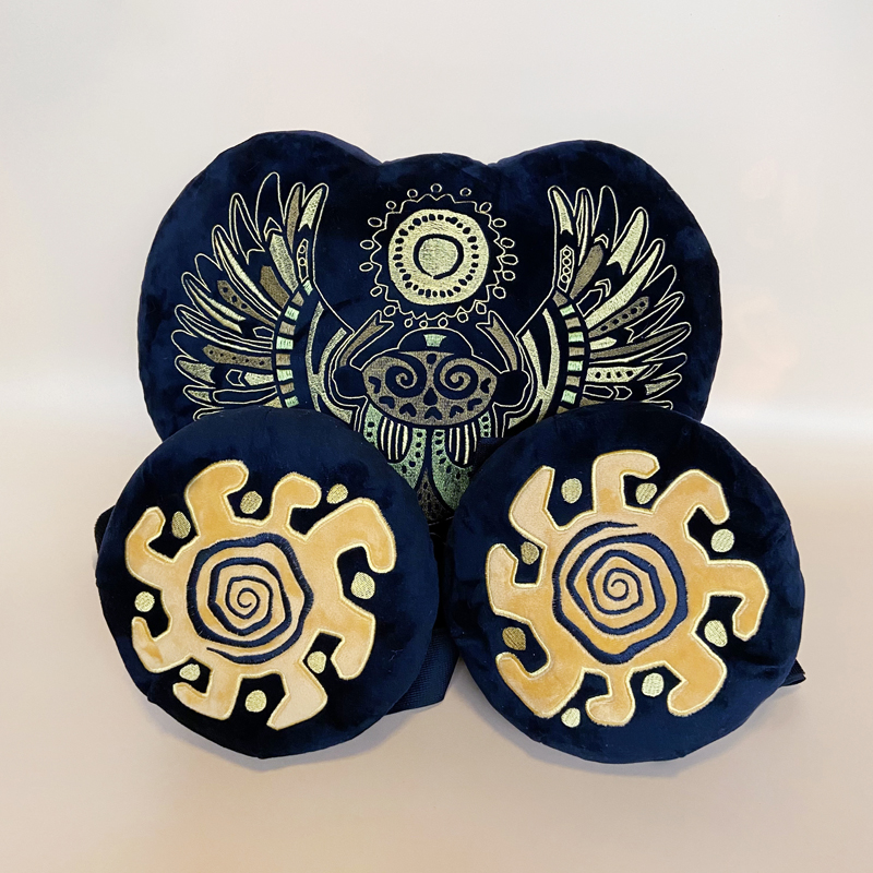 Black totem knee pads, a pair of black totem hip pads, a Pokeball knee pads, a pair of Poke Ball hip pads, a black bear claw, a pair of green bamboo hip pads, a bowknot knee pads, a pair of red bowknot hip pads, and a cat claw knee pads