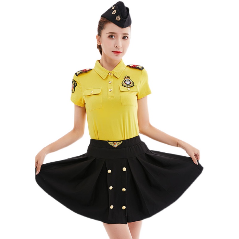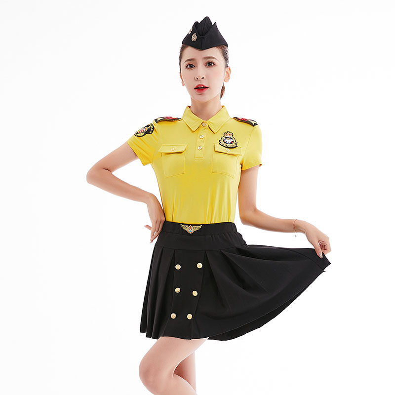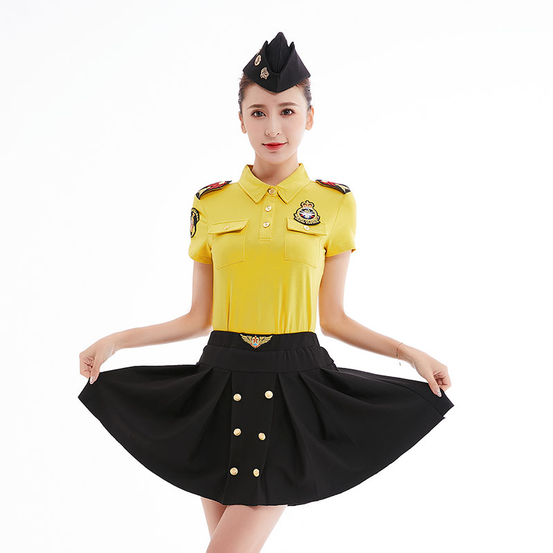 Summer New Short Sleeve T-Shirt Woman Yellow Leader Sleeve Sleeve Dance Show Short Short Dance Costumes Polo