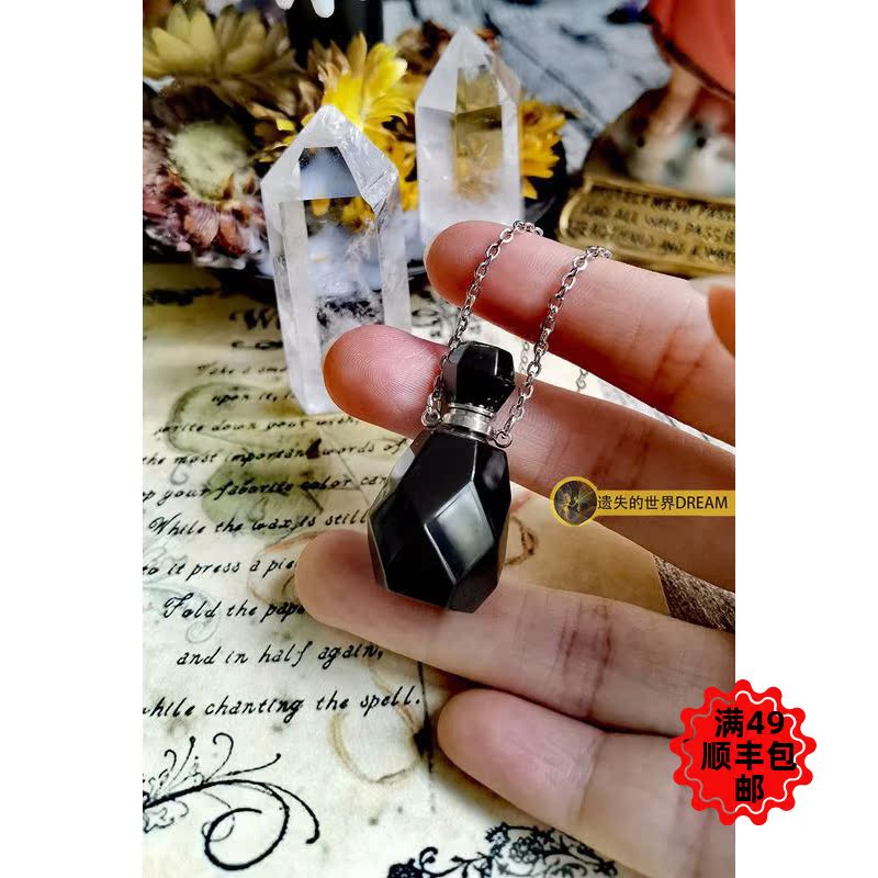 Obsidian Protect Natural Crystal Time Bottle Necklace Pendant with Chain Perfume Bottle