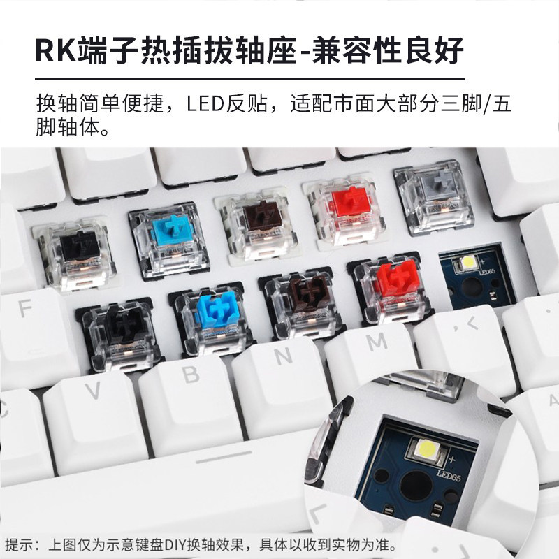 RK960 Round Dot TTC Gold Powder Fast Silver Moon White Shaft Hot Sublimation Keycap Bluetooth Wireless 2 4G Wired Triple Die 104 Key Customised Full Key Support Hot Plug Gaming Electric Race Eat Chicken LOL External Dress