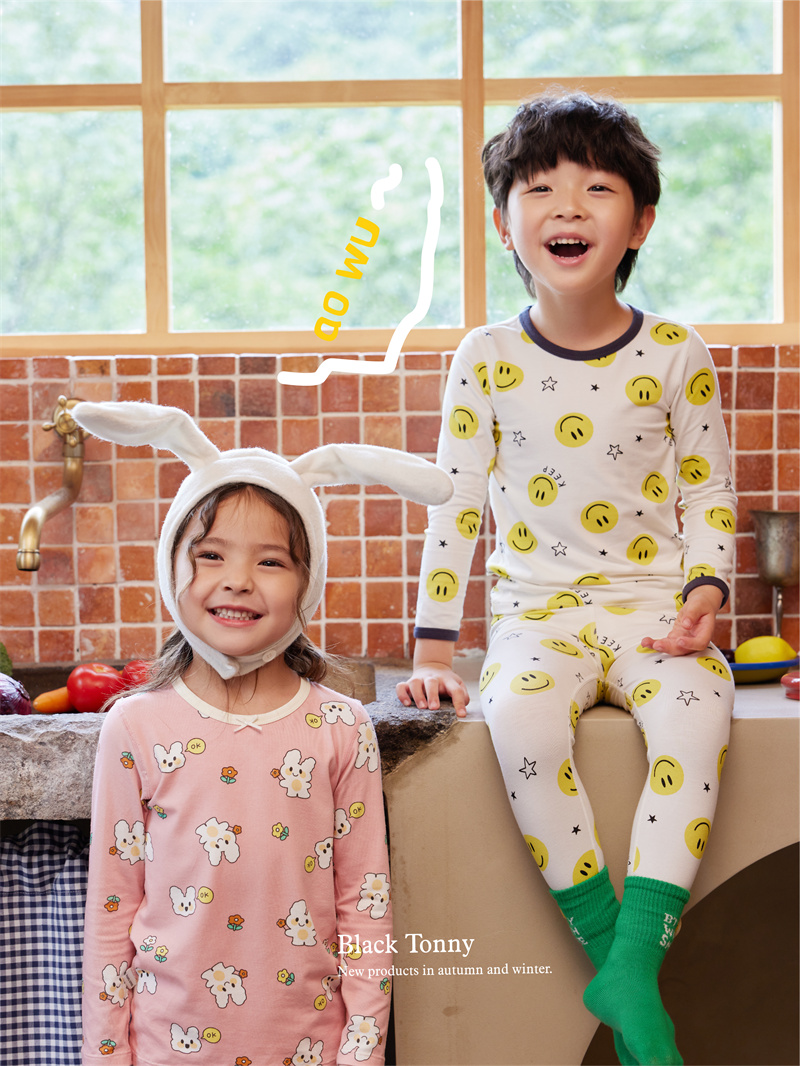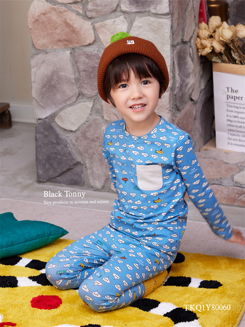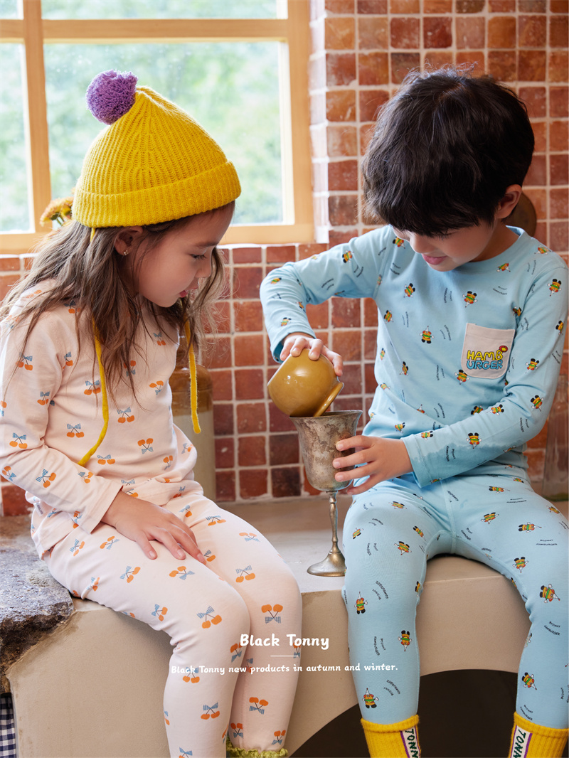 Little Black Toni Children's Thin Autumn Clothes Sanitary Pants Boys Baby Autumn and Winter Homewear Boys Lycra Underwear Top Set