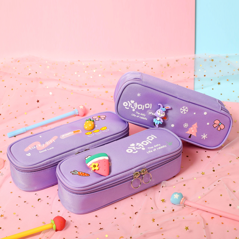 Pink pencil bag girls primary school students large-capacity canvas stationery bag children's stationery box new kindergarten pencil box