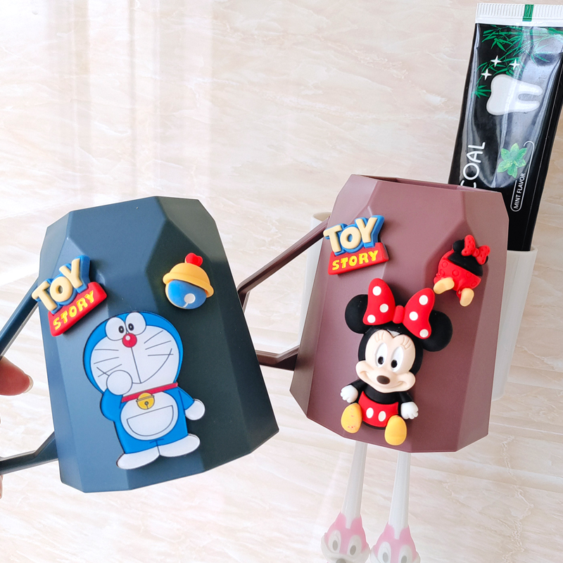 Wall-mounted Cartoon Mouthwash Cup Children Student Dorm Toothpaste Toothbrush Rack Seat Tooth rack male girl teeth brushing cup