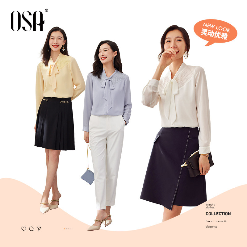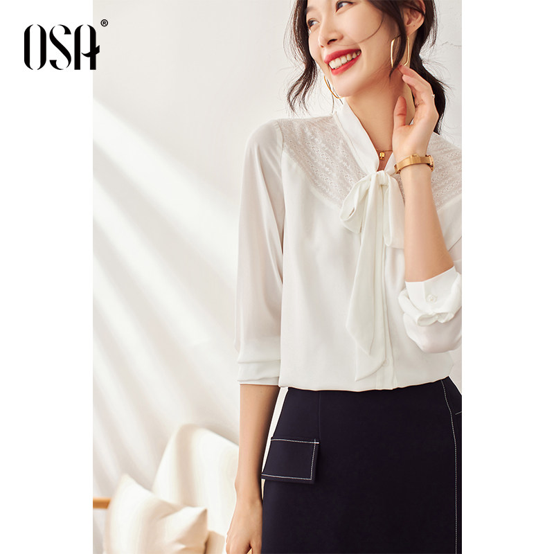 OSA Osa white long sleeve shirt woman autumn 2022 new OL professional shirt bow coat