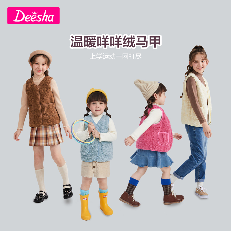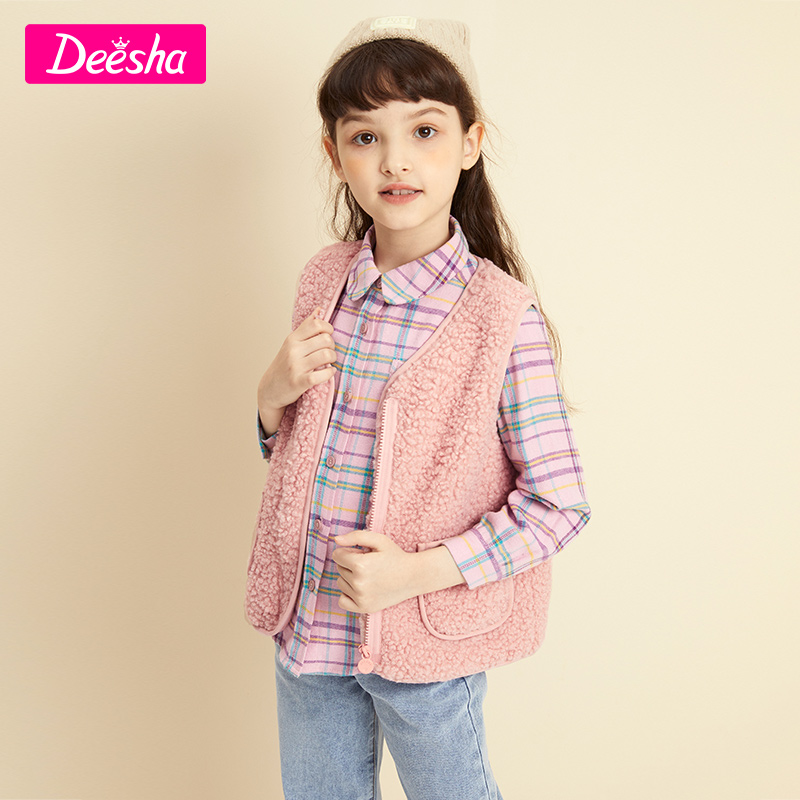 Disha Girls' Knitted Cardigan Vest Autumn and Winter Clothes Girls and Children's Baby Outerwear Polar Fleece Vest Disha Children's Clothes