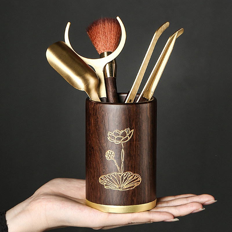 Copper ebony wood tea ceremony 6 six gentlemen set kung fu tea set kung fu tea accessories tea clip pot pen tea knife making tools