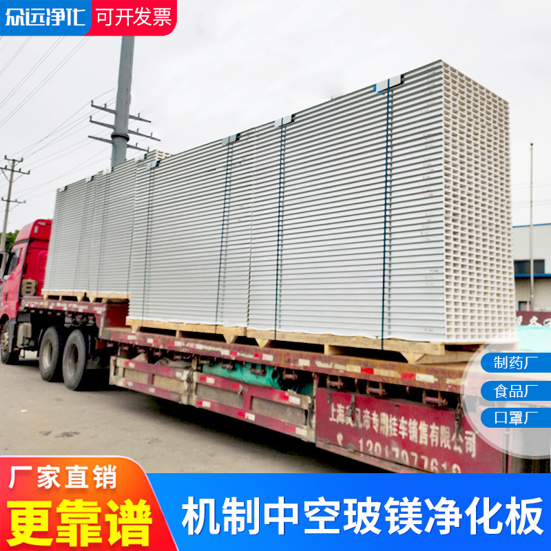 Hollow glass magnesium plate stainless steel rock wool purification board food factory color steel plate hospital sandwich ceiling fire insulation board