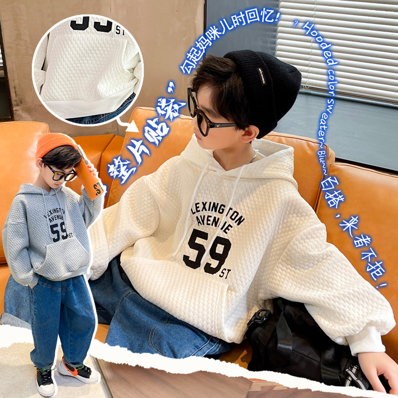 Boy necropolis for spring and autumn clothing 2022 new CUHK children's clothing sports Even hat for undershirt Fried Street Boy Blouse Tide