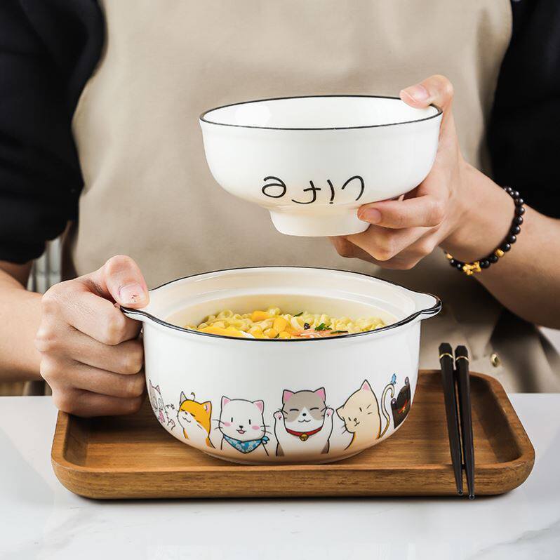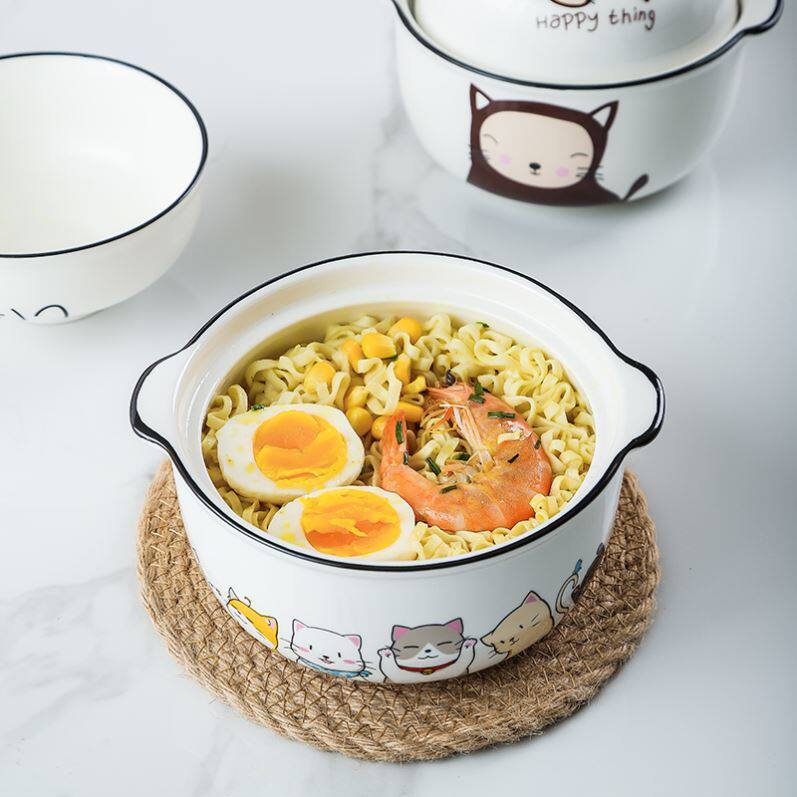 Bowl with lid and lid cute baby steam bowl Bowl with follicle ceramic student dormitory fine microwave available