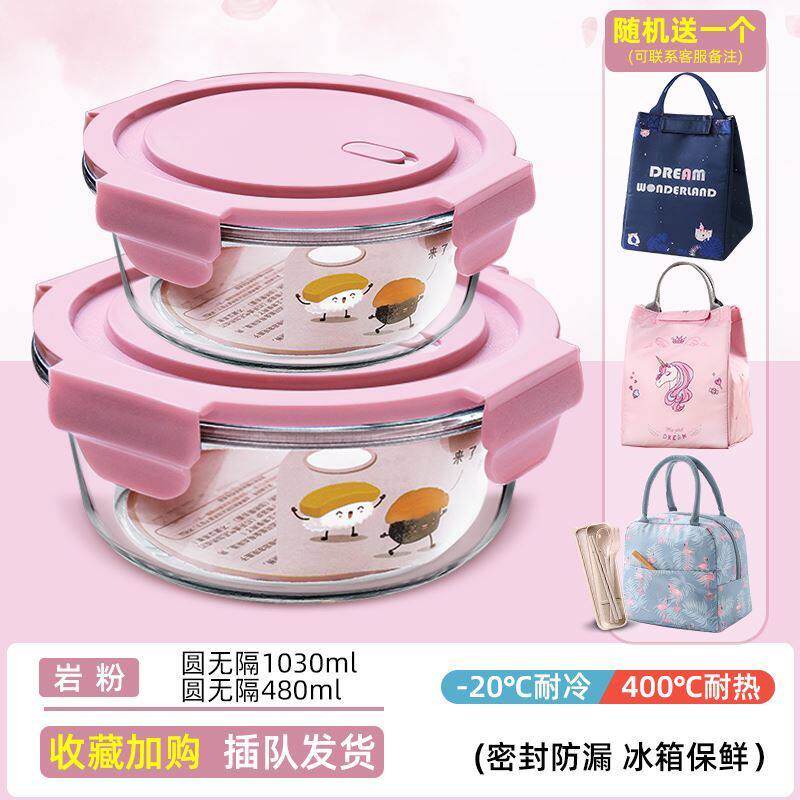 Mount Soup Container External with glass lunch box cute to work family microwave oven can heat the student lunch box round without leakage