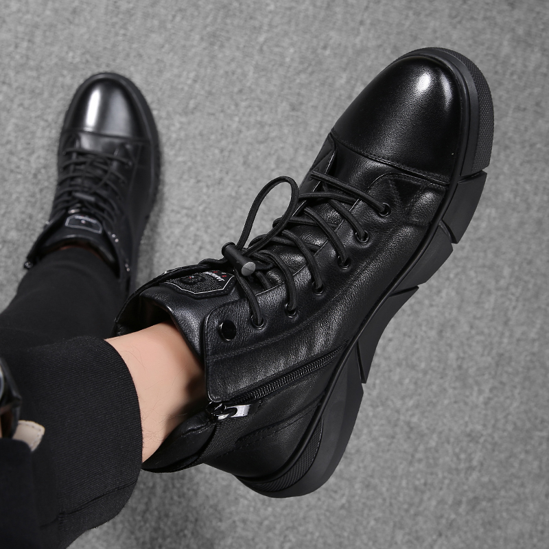 Snow boots men's Martin boots British style high-top leather shoes lacing winter mid-tube cotton shoes men's plus velvet warm and thick