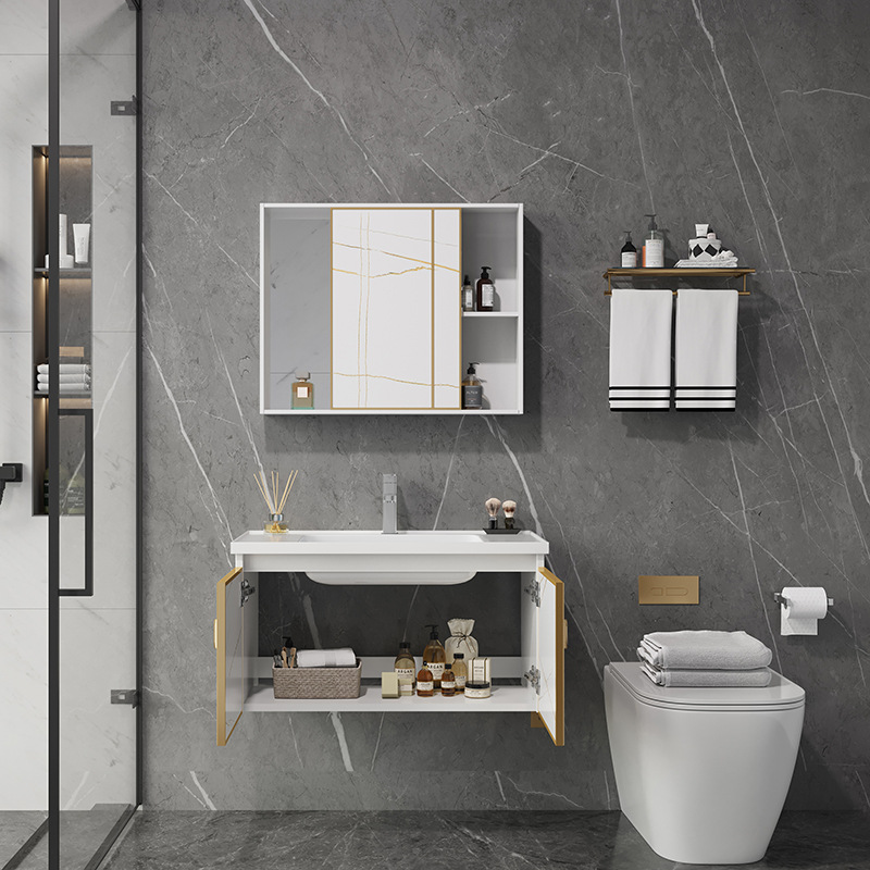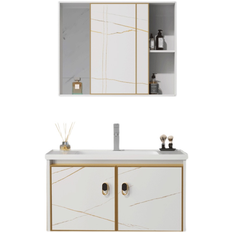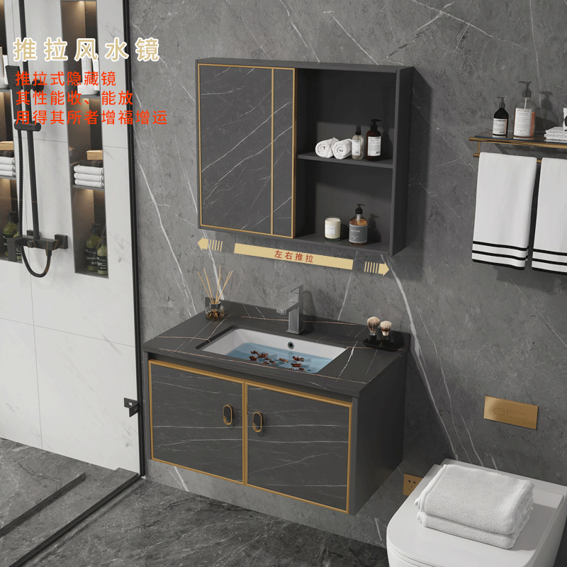 Heart Sea Such As Home Space Aluminum Bath Room Cabinet Combination Smart Feng Shui Mirror Cabinet Rock Board Integrated Ceramic Basin Small Size Bathroom