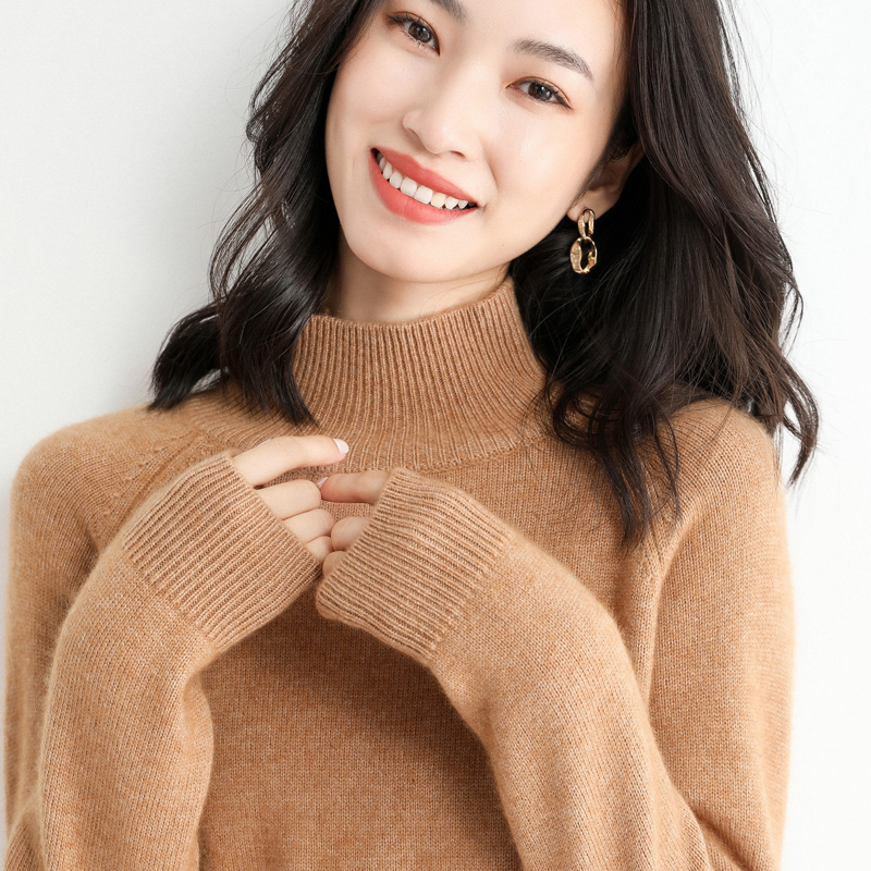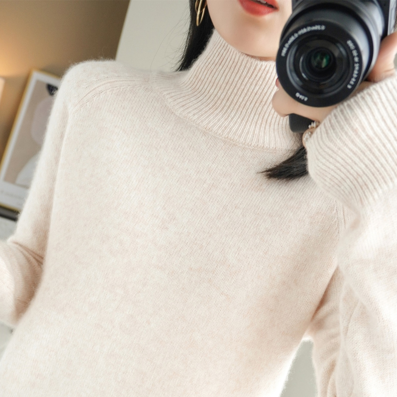 New semi-tall-collar sweater female with non-cashmere long sleeves thickened knitting and loose tops
