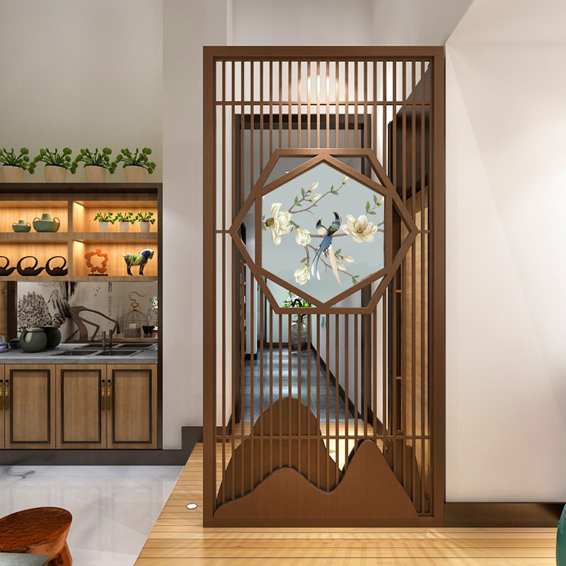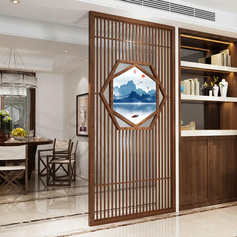 New Chinese solid wood screen partition wall Living room Home Art in house Entrance Xuanguan Custom Walnuts Log Brief Modern