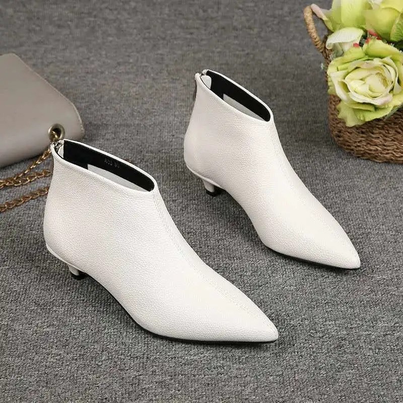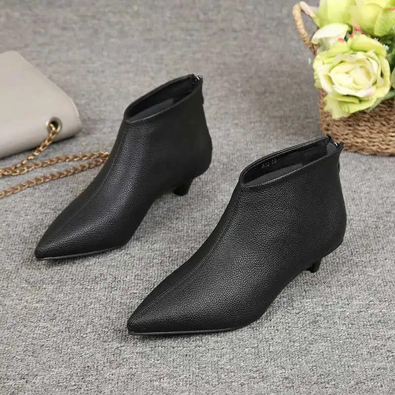 European station 2022 spring and autumn new low-heeled low-heeled women's shoes European goods pointed toe rear zipper all-match cat heel stiletto ankle boots