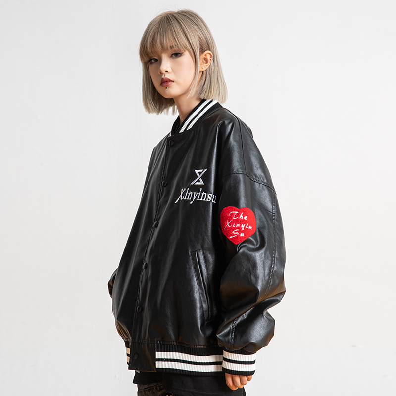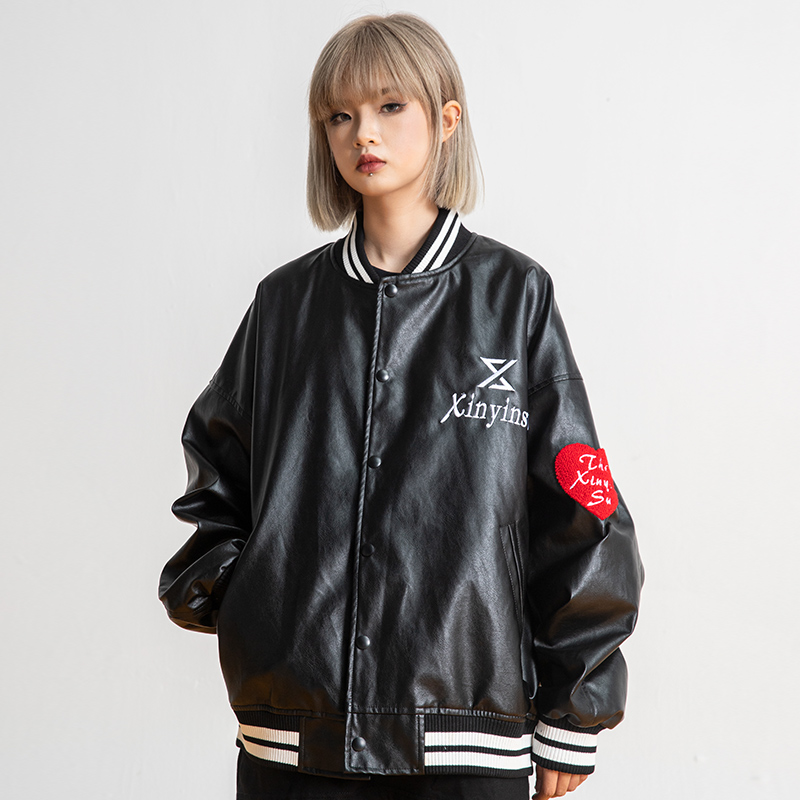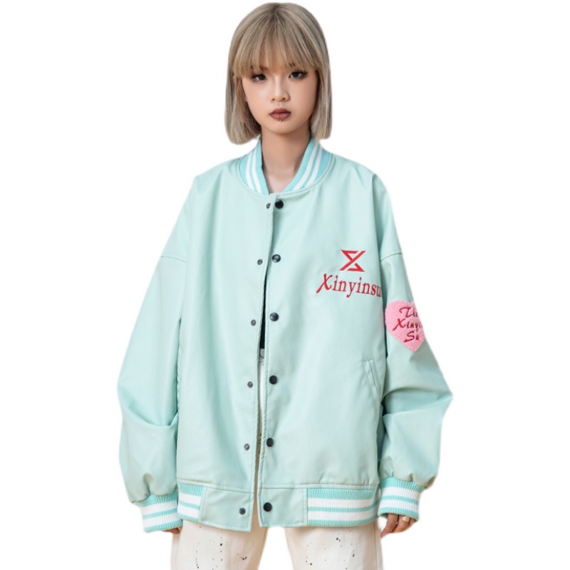 XINYINSU New Factors National Tide Peach Hearts Embroidered Couple Coats Spring Autumn New Loose Casual Baseball Clothing Tide Cards