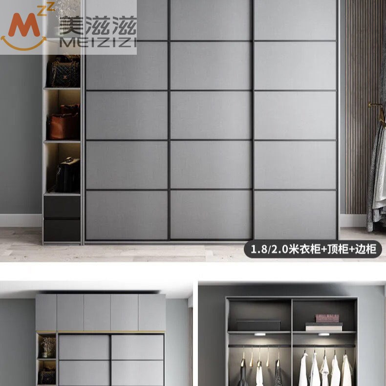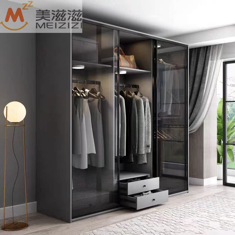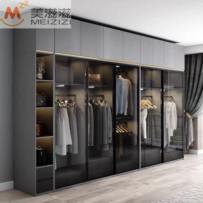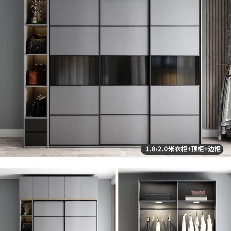 Modern minimalist sliding door wardrobe home bedroom light luxury glass door net red assembly cloakroom sliding door large wardrobe