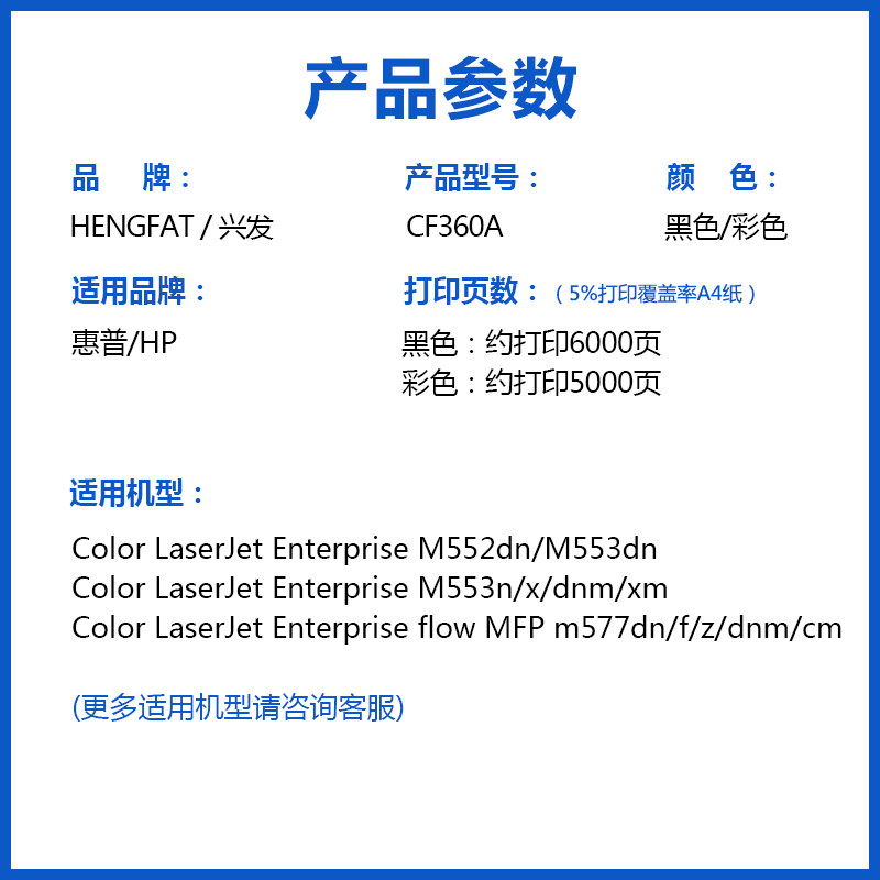 (6000 pages) CF360A black large capacity powder box (5000 pages) CF361A blue large capacity powder case (5000 pages) CF362A yellow large capacity