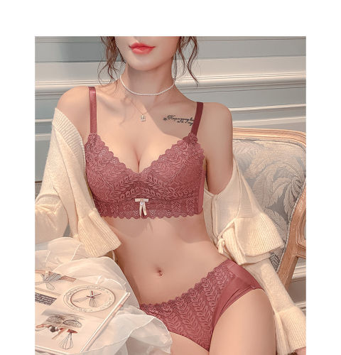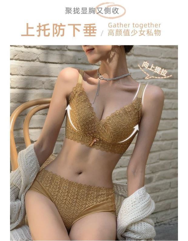 New Pint Bra Latex Underwear Poly-Adjusted Type Closeted Breast Anti-Drooping Lace Up with No Steel Ring Suit Lady