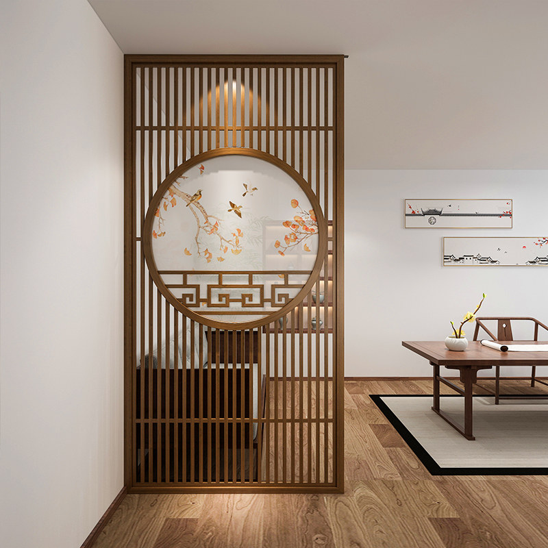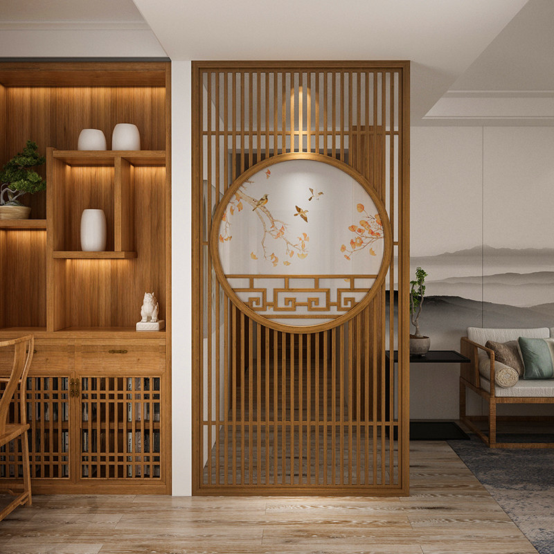 New Chinese Screen Partition Cabinet Bedroom Living Room Solid Wood Flower Lattice Fence Hotel Room Log Decoration Hyun Guan Wall