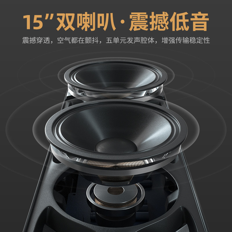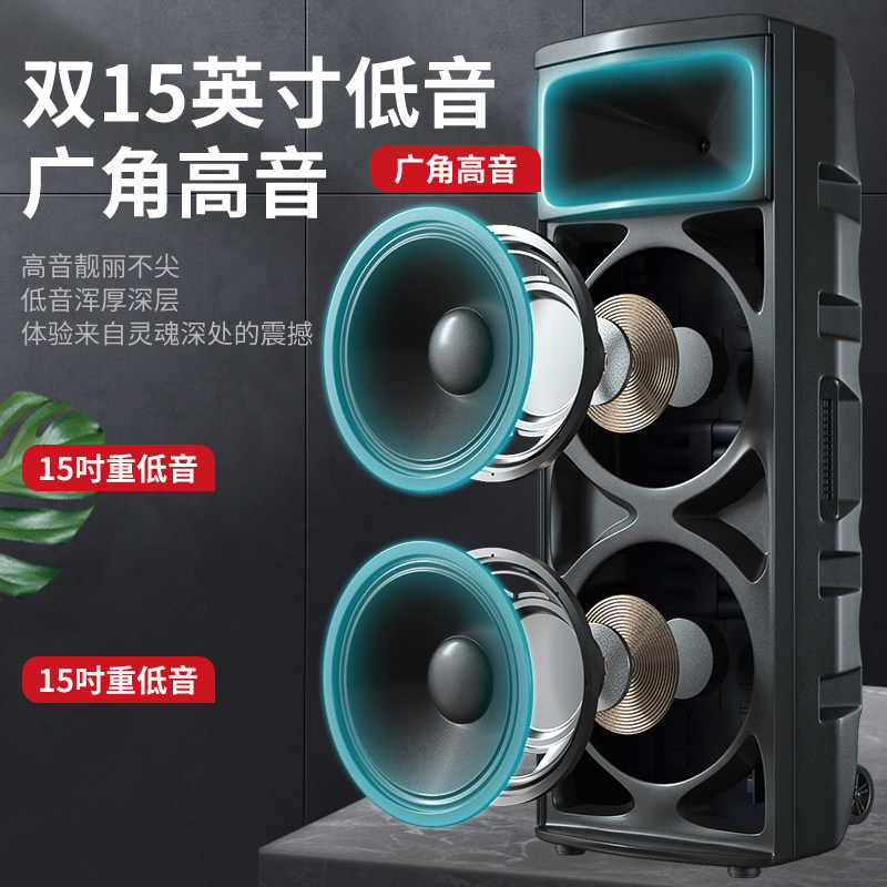 Xianke 1507 Square Dance Audio Professional Stage Performance K Song Speaker Double 15-inch Speaker Large Sound Power Outdoor Live Streaming with Wireless Microphone Bluetooth Singing K Song Home Musical Instrument Player
