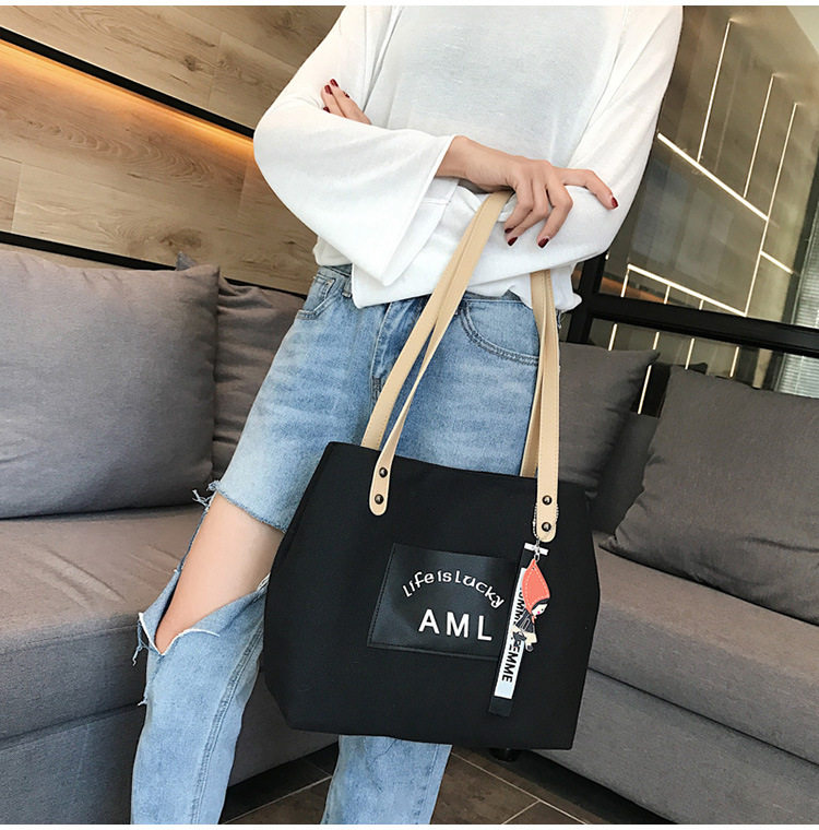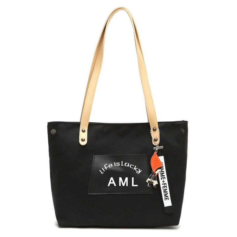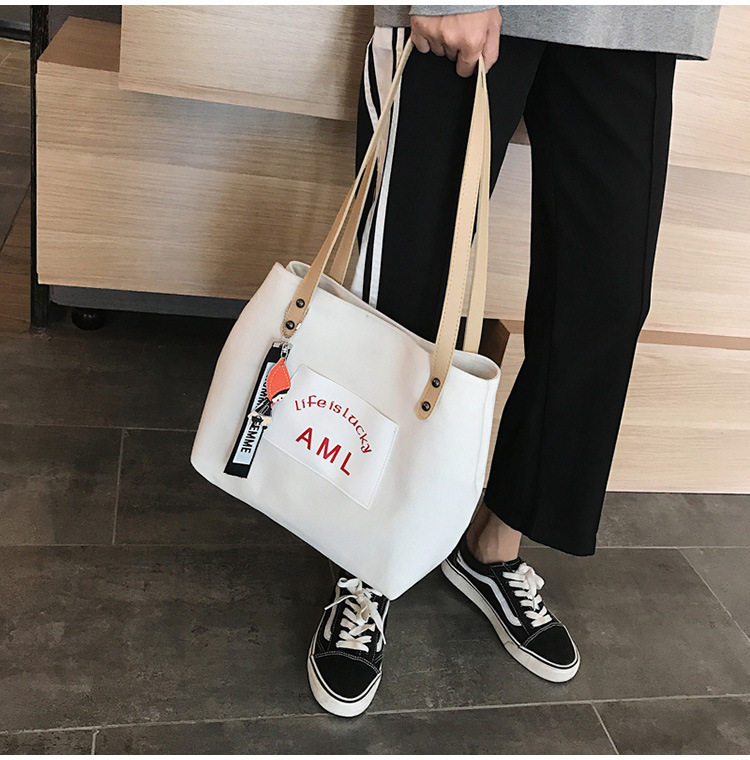 ins bag female 2020 new Japanese casual all-match tote bag Korean version solid color student single shoulder portable canvas bag