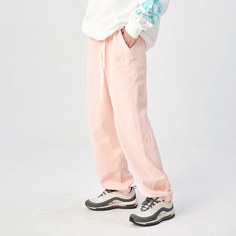 WORKSOUT (WKST) National tide brand three-color basic steel embossed string standard sweatpants loose couple hip-hop trousers