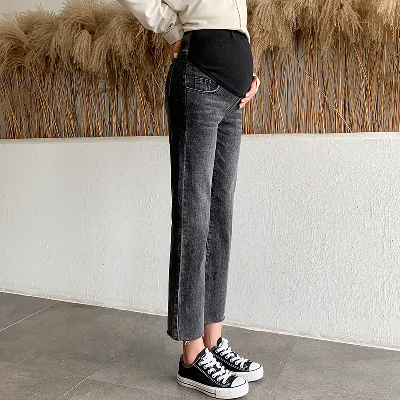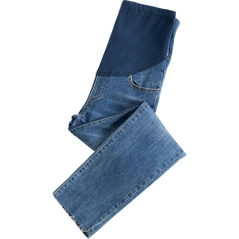 High-end pregnant women's pants fashion net red 2021 early autumn belly support pregnant women's jeans stretch slim straight autumn style