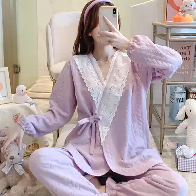 Yuezi suit set spring and autumn winter air cotton home clothing cotton pregnant women breastfeeding pajamas postpartum 10 months hospitalization