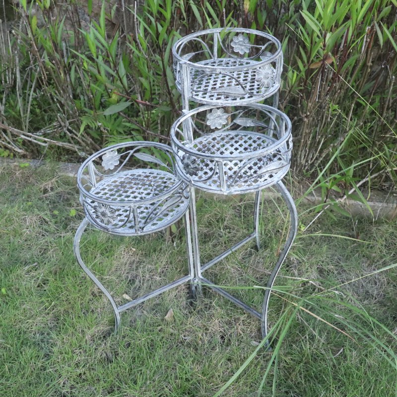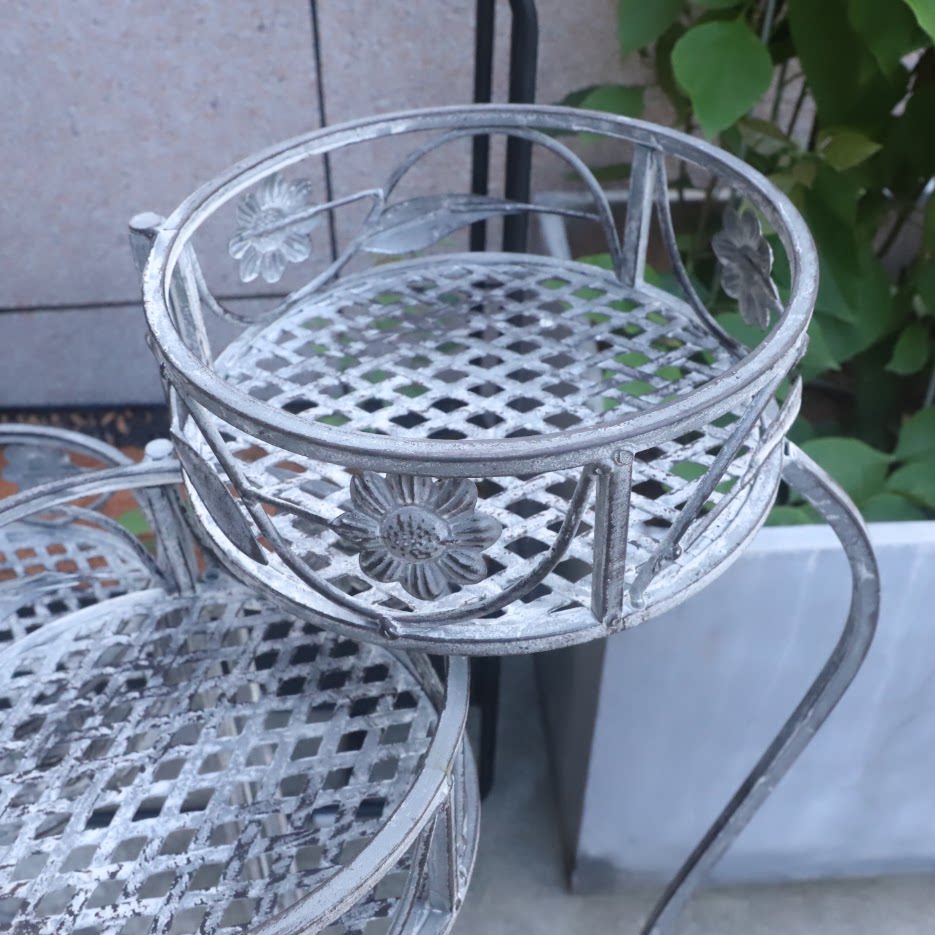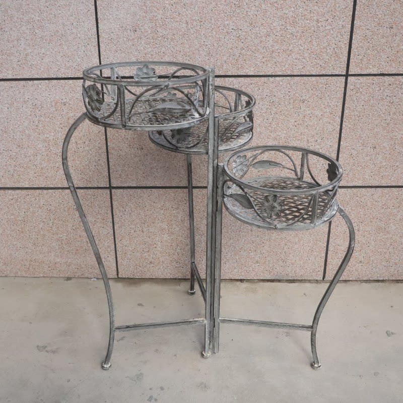 Garden wrought iron folding flower stand floor-to-ceiling ladder shelf flower tray multi-layer balcony raised gray flower pot rack European style