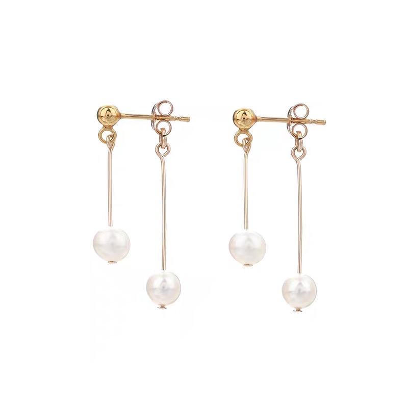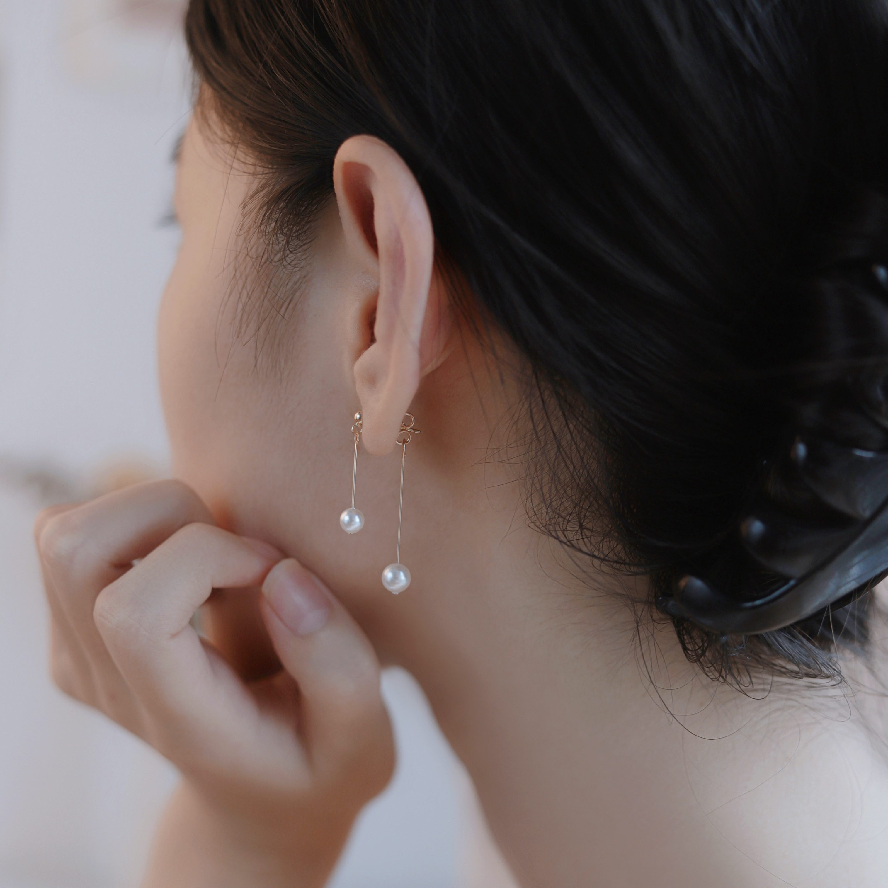 Post-hanging fine pearl earrings female temperament high-sensitive round face with thin ear crash anti-allergy silver ear