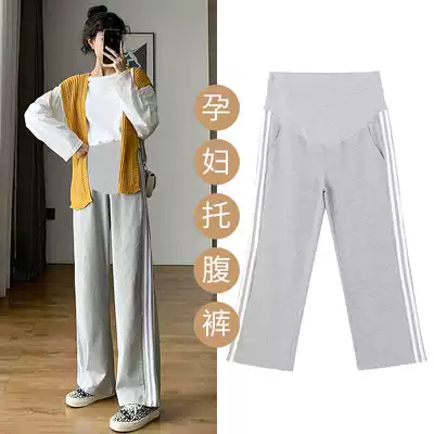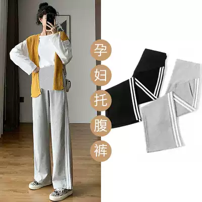 Net red autumn pregnant women pants 2021 New wear wide leg pants fashion sports pants casual pregnant women belly pants slim