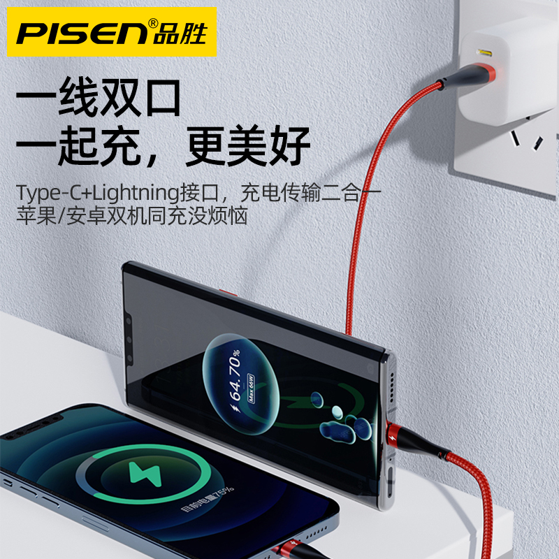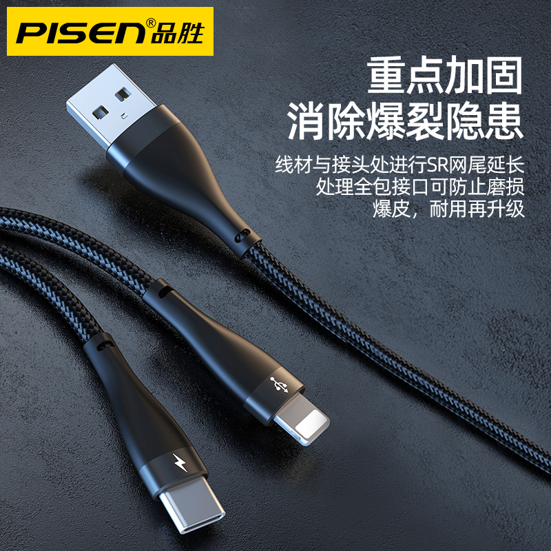 Pint winning two-in-one data line one drag three-charge wire Quick Charge Three-in-one Apple Huawei type-c Android Three-head, three-wire all-in-one mobile phone on-board fast charging wire multi-purpose multifunction
