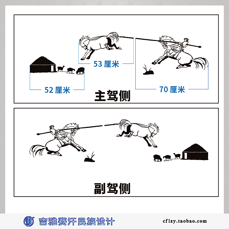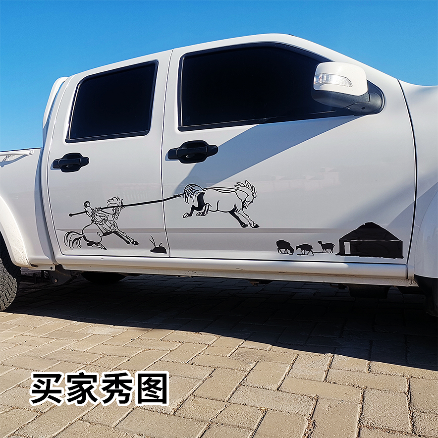 Set of horse-themed car decoration stickers car door pull flower grassland ethnic style Mongolian Giya Saihan