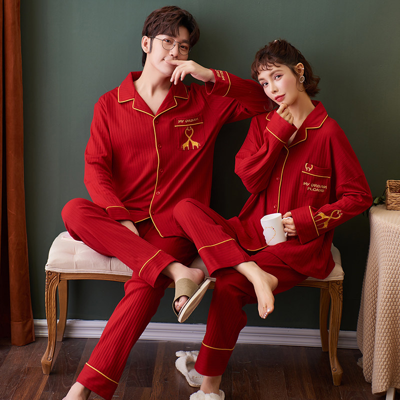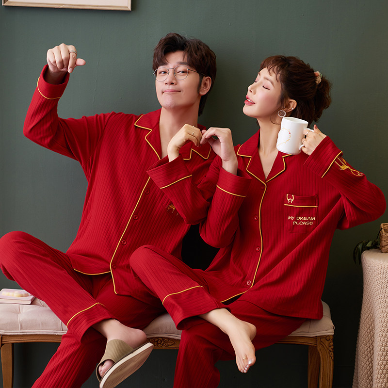 2021 new wedding pajamas newlywed couple suits men's big red cotton women's autumn and winter zodiac year of the tiger