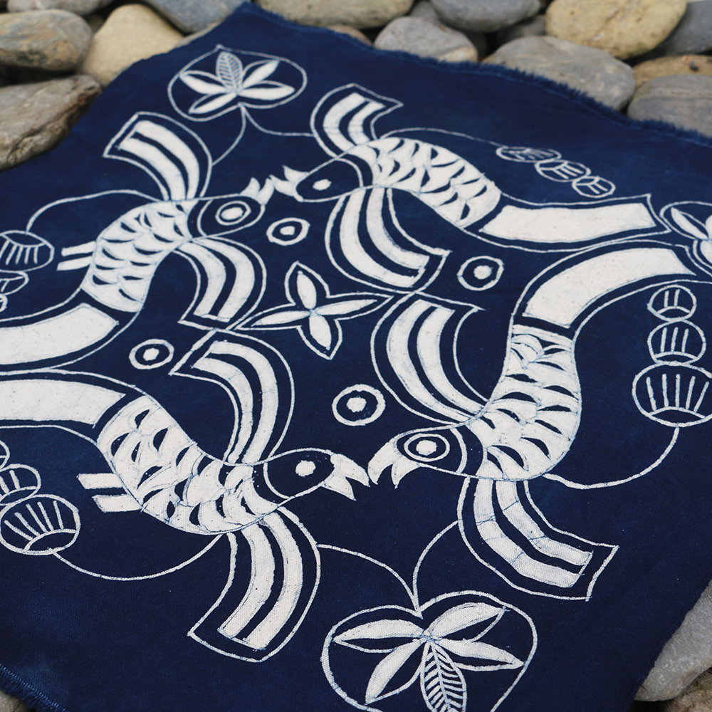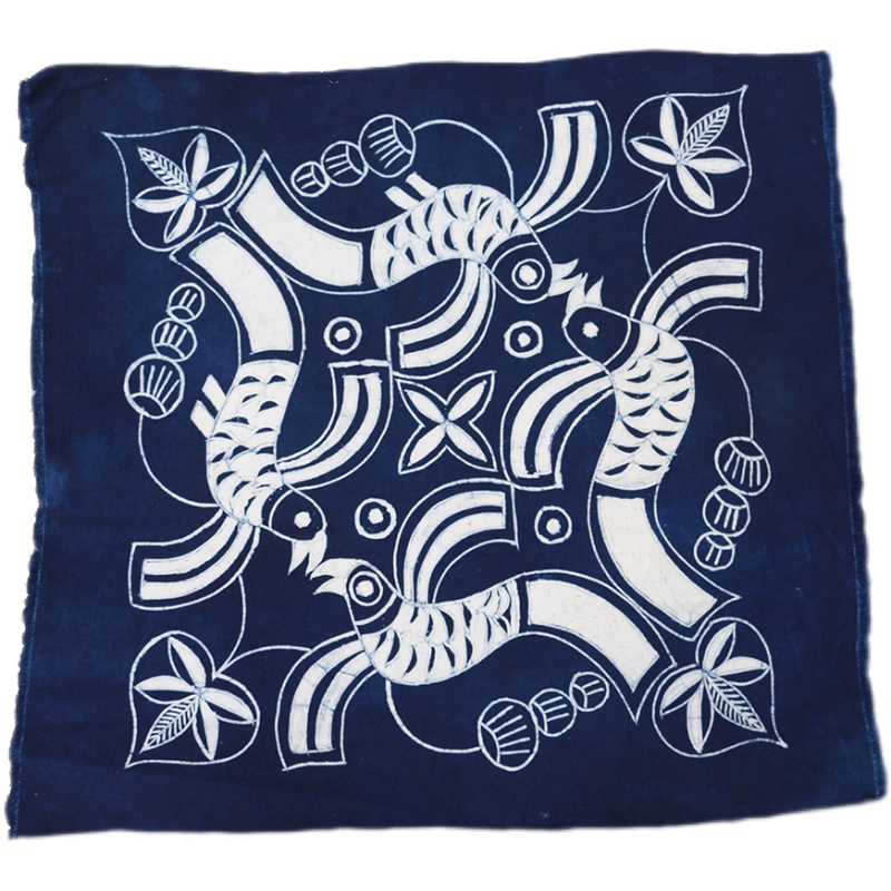 Lean Mountain People Wax Dye Print Blue Dye Miao Crafts Wall-mounted Decoration Clothing Fabric Accessories Motif Custom 40 * 40cm
