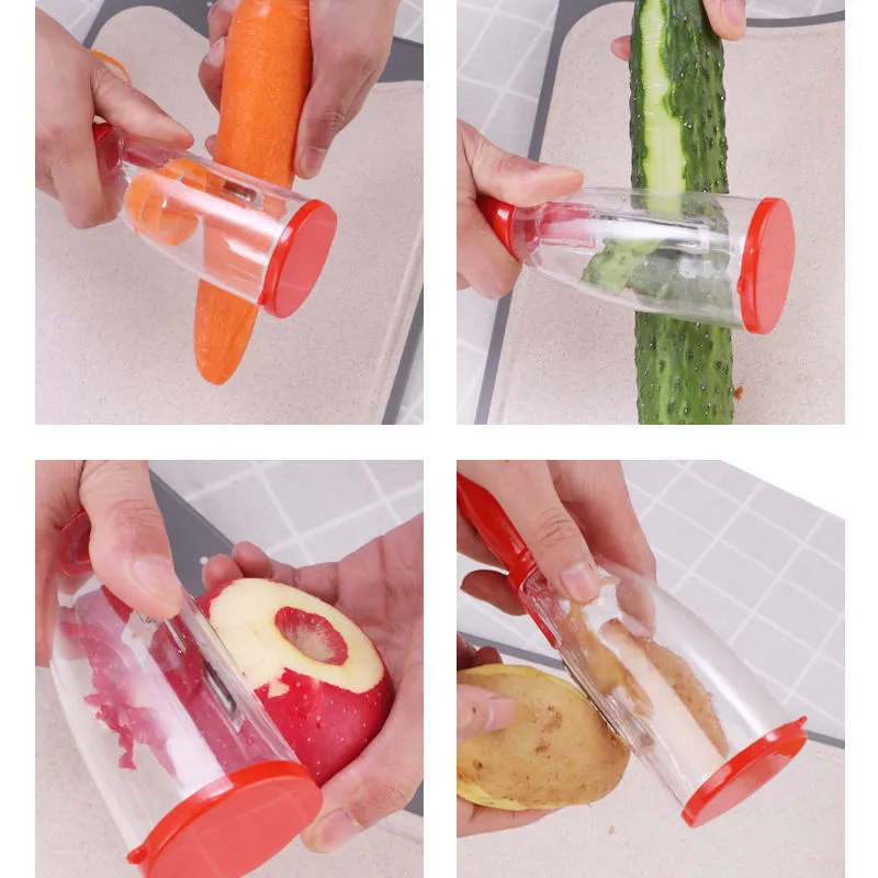 Stainless steel peeling knife peeling knife anti-splash fruit and vegetable peeler with barrel storage type scraping peeling knife artifact