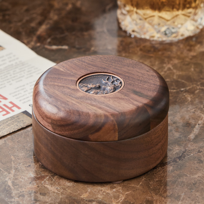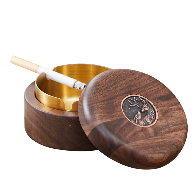 Black walnut solid wood ashtray home living room anti-flying ash ashtray light luxury retro with lid office gift